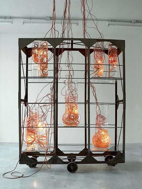 Made together with Julie Mathias whilst at the RCA Flood is a light made of lightbulbs and a big mass of cables submerged in water. It's enticing, it's frightening and it gets great reactions from people who see it. I learned an enormous amount from it and best of all it's the project that got me through those difficult first few years after college. Even so, I have mixed feelings about it.